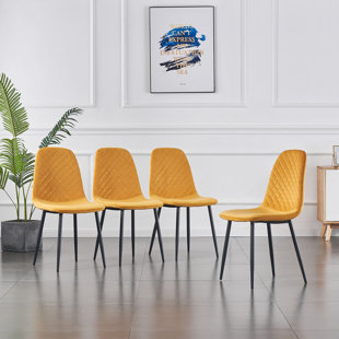 This dining chair fabric is high-quality fire resistance velvet fabric and with comfortable thick padding and back. The back of the chairs fits your body back shape for optimum comfort while sitting. The dining chair has lightweight and in perfect shape. These chairs can be used as occasional chairs or as dining chairs and you can make them work in any way that suits you and your home. Make these chairs eye-catching seats in an empty space or gather everybody around the dining table. They are perfect showpieces that can be displayed in your bedroom, office, kitchen, or living room. The dining chair is delivered with 4 powder-coated metal legs can support a maximum weight of 251 lbs.